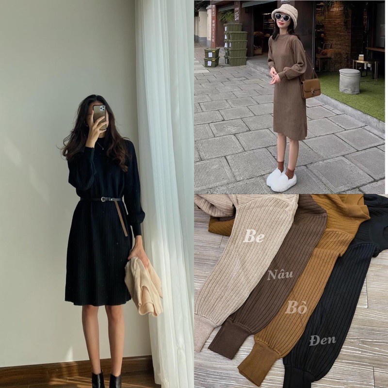 Giới thiệu Váy Len Tăm Dáng Suông Dáng Dài Chất Co Giãn Thoải Mái Ulzzang Hàn LICA V07