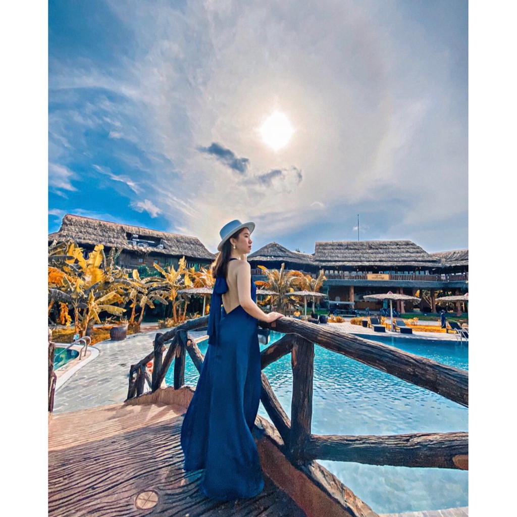 ✔️ Kiểu dáng: váy maxi cổ yếm hở lưng có đệm ngực