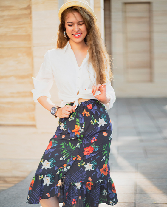 Kiểu dáng váy midi dài qua gối
