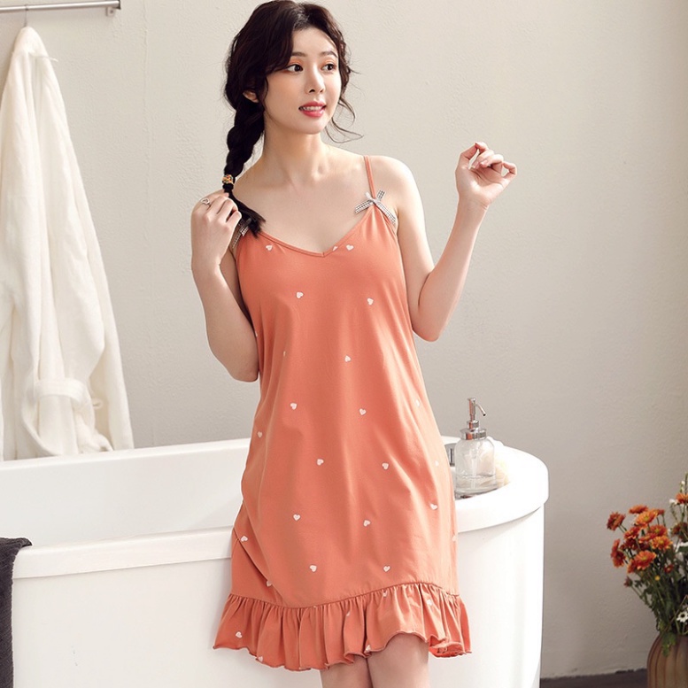 Giới thiệu Váy Ngủ 2 Dây Đính Nơ, Váy Mặc Nhà Siêu Mát, Chất Cotton Co Giãn, Nhiều Màu VH252