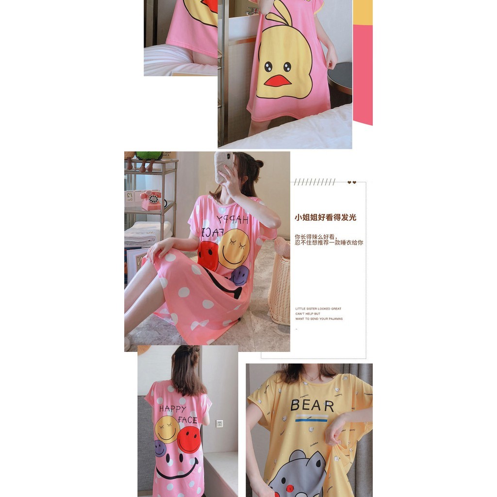 Váy Ngủ Cotton Cute A01 Dáng Suông Fom Rộng Chất Đẹp