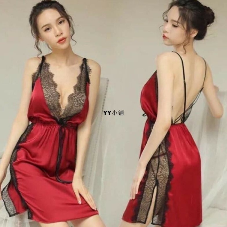 Giới thiệu Váy Ngủ Lụa 2 Dây Pha Ren Xẻ Eo Quai Chéo Lưng Quyến Rũ 5054
