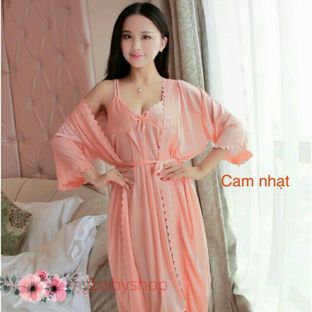 Váy Ngủ Lụa Lạnh Kèm Áo Choàng Dài Chất Liệu đẹp