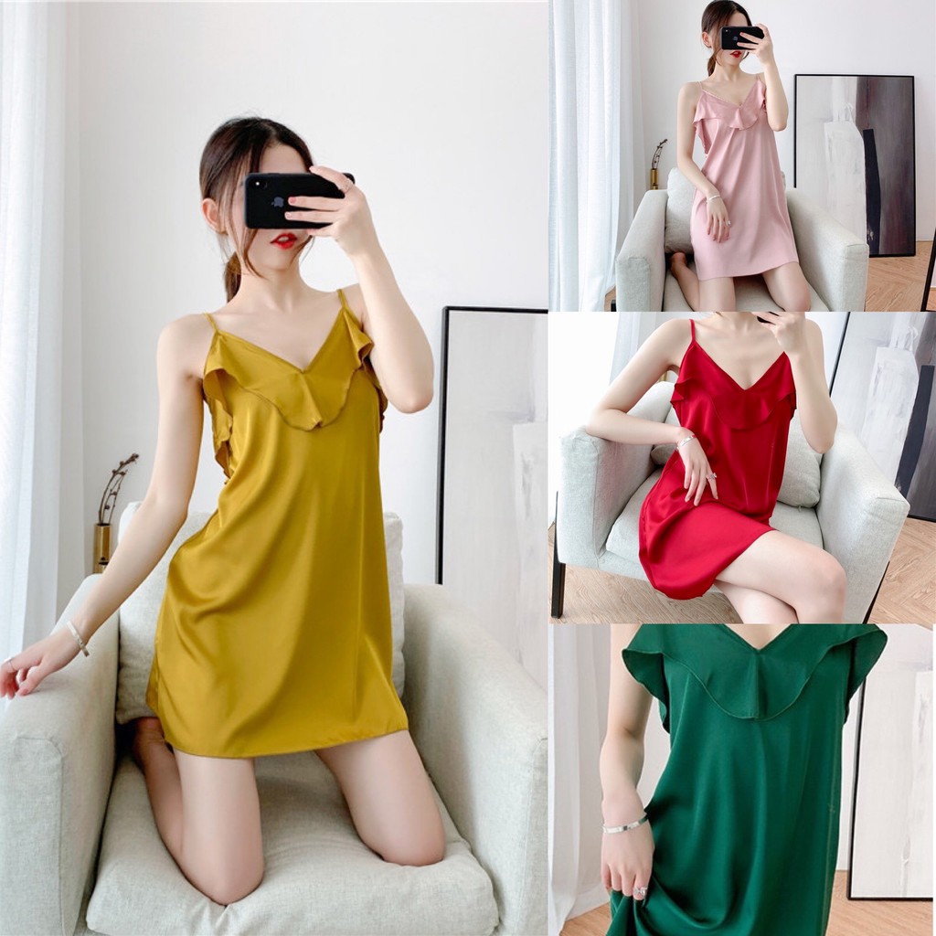 Thời Trang Nữ > Đồ ngủ > Váy ngủ || Váy ngủ lụa trơn cổ vịt nhiều màu