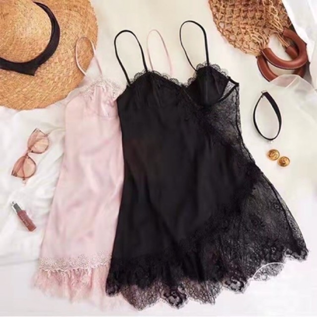 Váy ngủ lụa viền ren hoa chéo hàng cao cấp