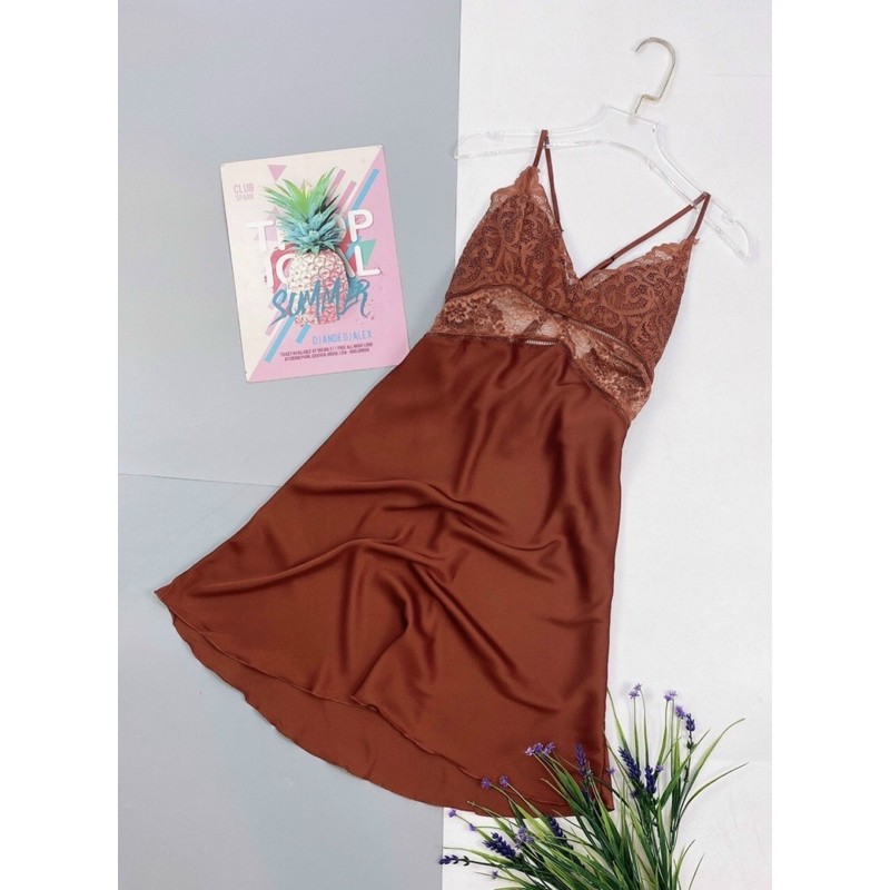 Thời Trang Nữ > Đồ ngủ > Váy ngủ || Váy ngủ nữ lụa đan dây chéo lưng hàng quảng châu cao cấp M112