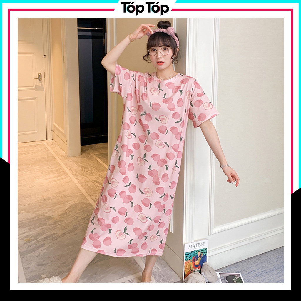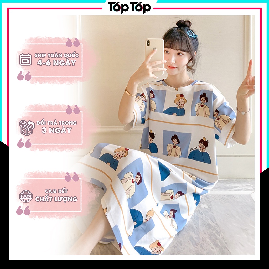 Váy ngủ nữ ngắn tay đầm ngủ dáng suông chất cotton mềm mát họa tiết hoạt hình dễ thương ĐN01