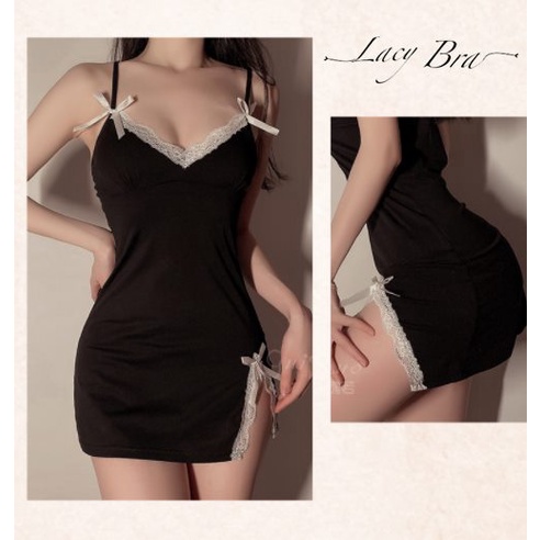 Giới thiệu Váy Ngủ Sexy Phối Ren Nơ Xẻ Đùi Siêu Gợi Cảm Lacy Bra - V5