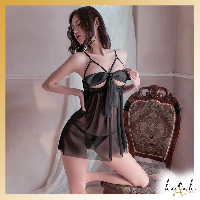Váy ngủ voan phối nơ ngực xuyên thấu gợi cảm - N59