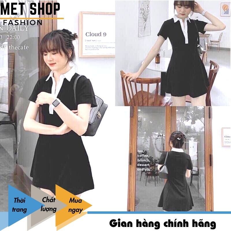 -VÁY POLO DÁNG XÒE MÀU ĐEN PHỐI CỔ TRẮNG , ĐẦM POLO CỔ BẺ ÔM BODY TÔN DÁNG - METHSHOP 1989