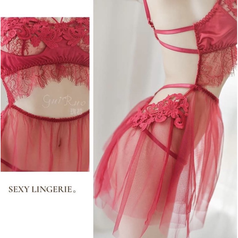 Thời Trang Nữ > Đồ ngủ > Váy ngủ || Váy ren mềm hoa nổi xuyên thấu khoét xẻ quyến rũ [ Tặng kèm quần chip ]