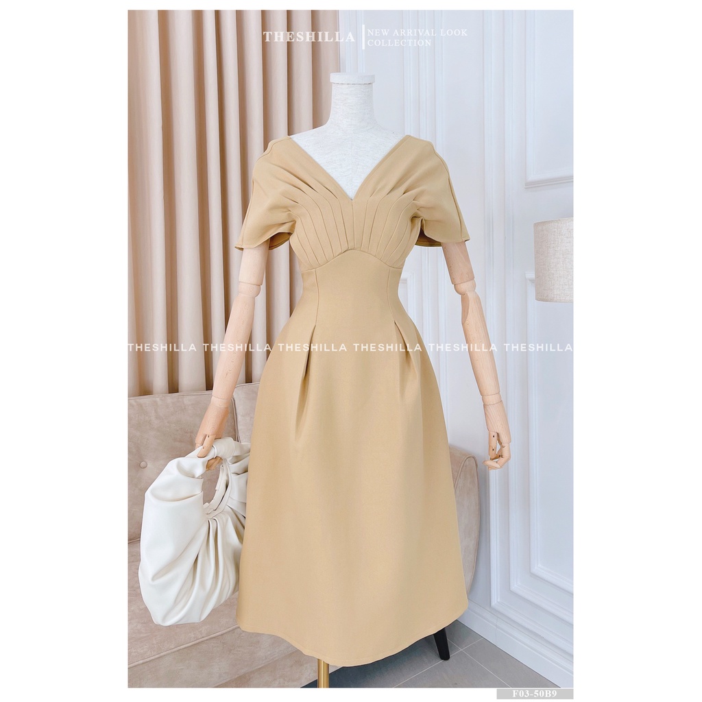 Giới thiệu Váy thiết kế cao cấp màu kem tay cánh dơi chiết eo form xòe [ Có video + Ảnh thật ] The Shilla - F03-50B9