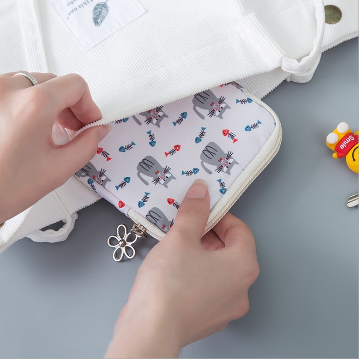 Giới thiệu Ví đựng tiền xu cho nữ nhỏ gọn mini ví tiện ích đựng tai nghe, tiền lẻ, phụ kiện, lặt vặt... hoạt tiết hoa quả lá cành