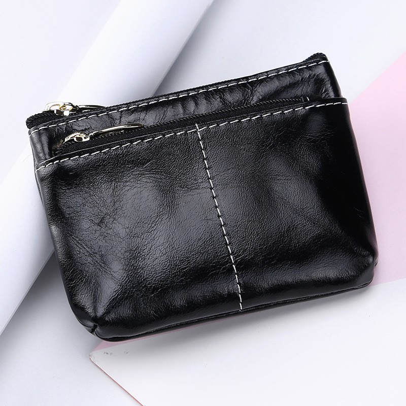 Ví móc khóa để tiền lẻ để thẻ da bò sáp 100 phần trăm