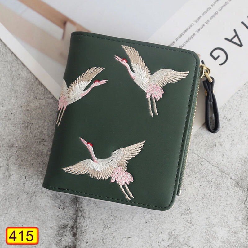 VÍ NGẮN NỮ CẦM TAY CAO CẤP 415 THÊU 3 CON HẠC HỒNG HOT TREND DỄ THƯƠNG