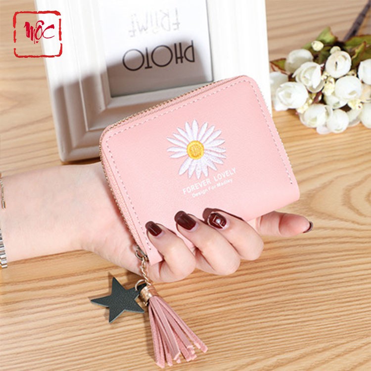 Ví nữ cầm tay, bóp da mini thêu hoa cúc nhiều ngăn nhỏ gọn bỏ túi tiện lợi- VD803