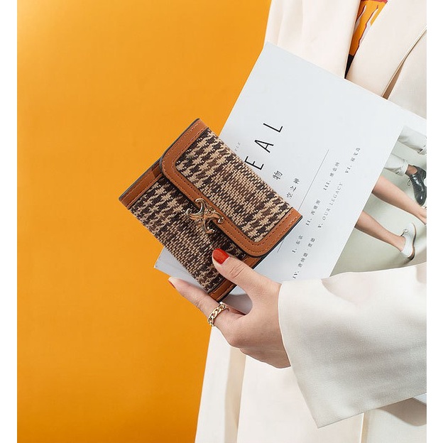 Ví ngắn nữ họa tiết kẻ sọc có khóa kéo