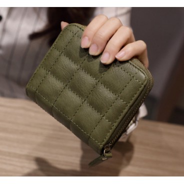 Ví nữ hình vuông may ô kiểu gấp cúc bấm và khóa kéo thời trang