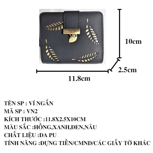 Giới thiệu Ví nữ mini cầm tay ngắn đẹp cao cấp nhiều ngăn VN2