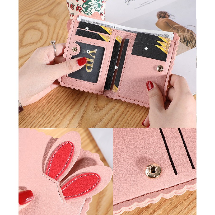 Ví nữ mini cầm tay ngắn tai thỏ cute dễ thương bỏ túi đựng tiền nhiều ngăn sang chảnh TV06