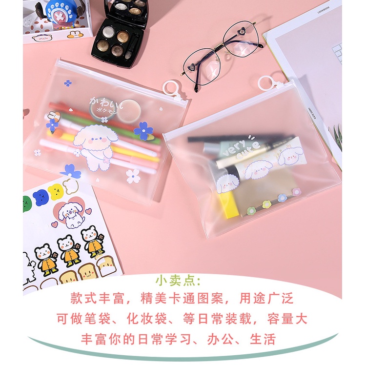 Giới thiệu Ví zip trong (chống thấm) đựng bút/đồ trang điểm họa tiết dễ thương