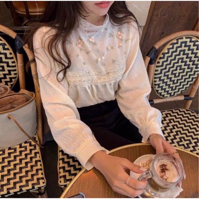 Thời Trang Nữ > Áo > Áo sơ mi || [VIDEO] Áo babydoll hoa ngực Ulzzang - Áo thêu hoa vintage