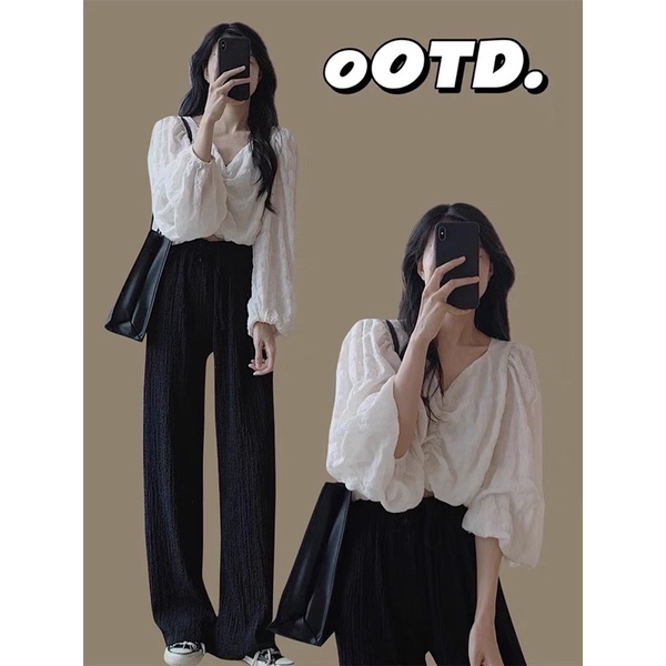 Thời Trang Nữ > Áo > Áo sơ mi || [VIDEO Unbox] ÁO VOAN XỐP NHÚN TAY BO (ảnh thật)