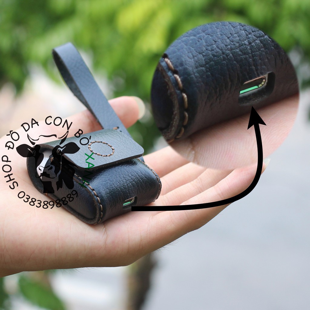 Vỏ da bảo vệ hộp sạc tai nghe Bluetooth Apple airpods 1,2 da thật handmade