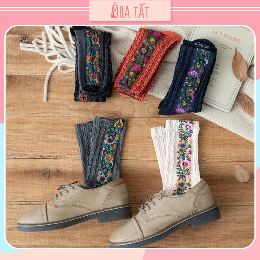 Vớ dài/ tất dài thêu gân hoa Mua Tất 6876-77 (muatatshop)