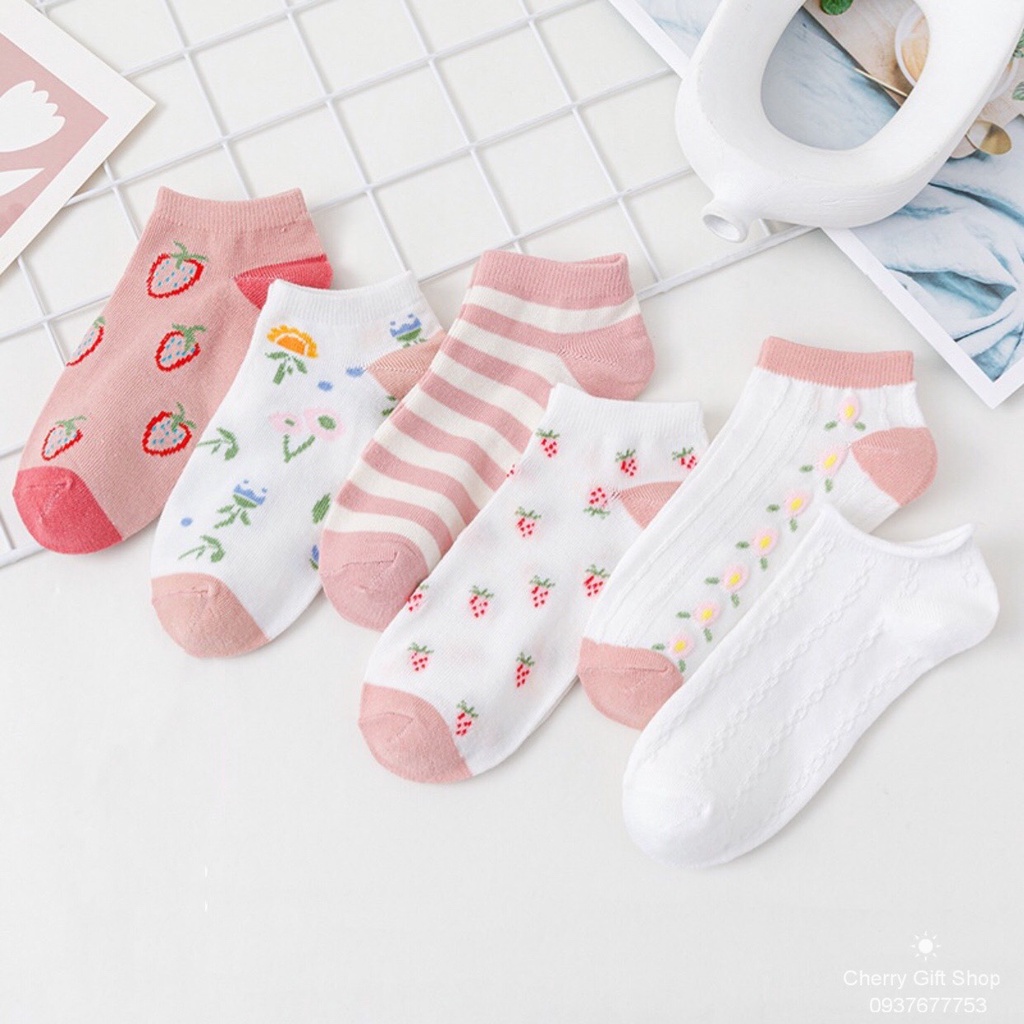 Vớ Lười Họa Tiết Dễ Thương - Tất Thoáng Khí Cotton Cổ Thấp