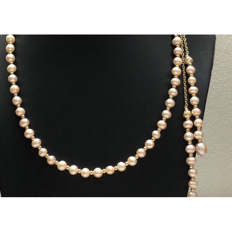 Phụ Kiện Thời Trang > Phụ kiện thêm > Mặt dây chuyền và Charm || Vòng cổ hạt trai màu cam 6-7ly mix charm