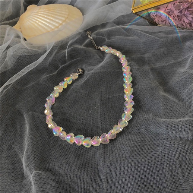 Vòng cổ vintage đính chuỗi trái tim, sắc màu óng ánh, đeo lên trông cực tiểu thư, xinh lắm nhaa