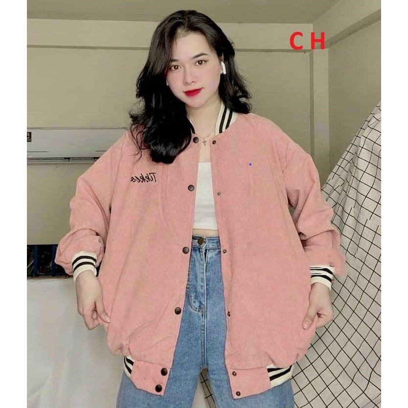 Giới thiệu [ Xả kho hàng] Áo khoác bomber chất nỉ nhung tăm mềm mịn, áo khoác có cúc mùa đông 3 màu đen,be,hồng