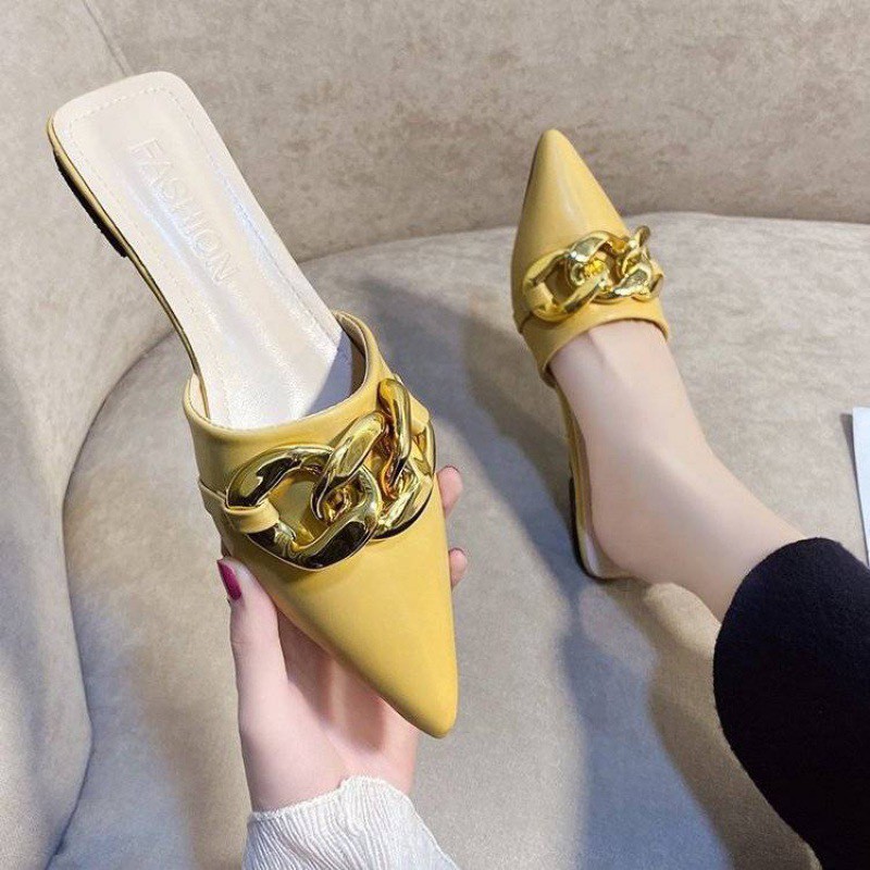 Giày Dép Nữ > Giày đế bằng > Giày sục & Giày búp bê || XẢ KHO (S99) Dép sục nữ tag xích (mã 2799-sục)