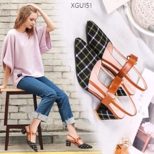 XGU151 XẢ HÀNG Giày cao gót đế vuông phong cách vintage