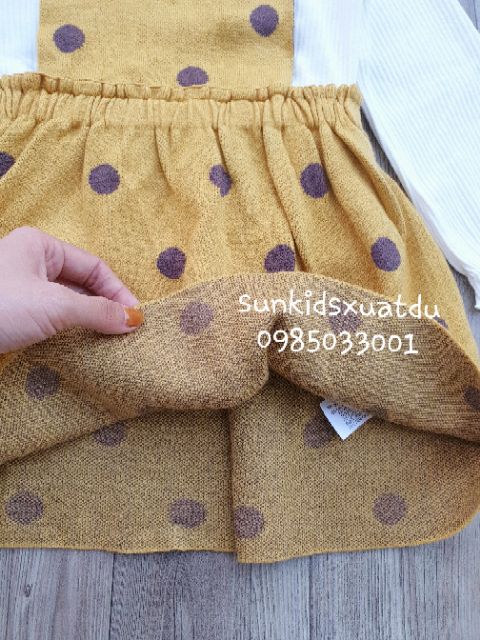Thời Trang Nữ > Đồ liền thân > Quần yếm || Yếm len vàng chấm bi đen